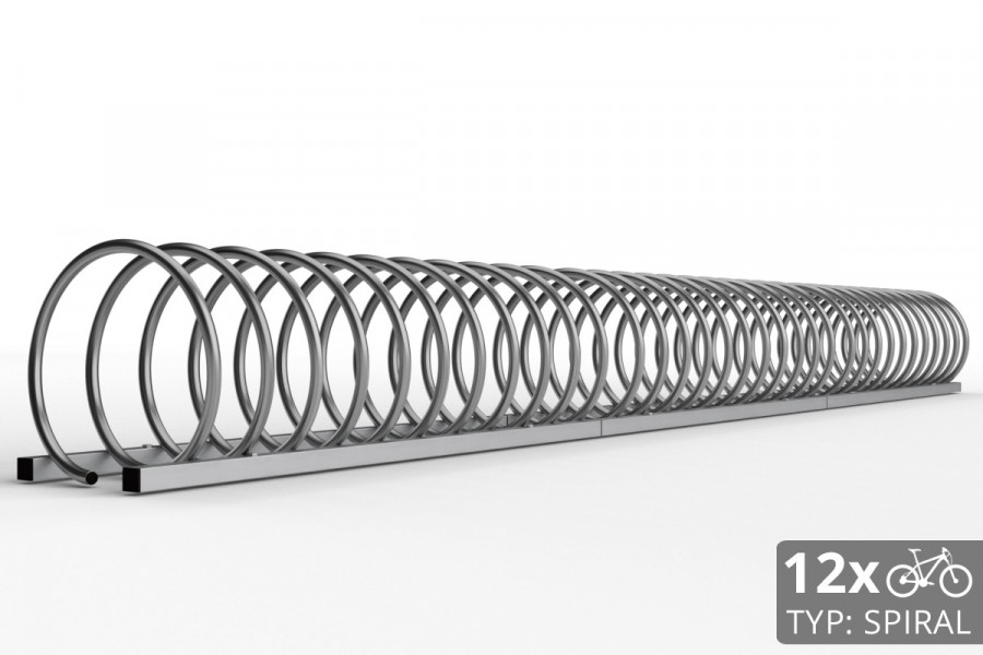 12 kerékpárhoz való SPIRAL kerékpártartó, 330 cm rozsdamentes acél, ideálny pre bezpečné uchytenie bicyklov.