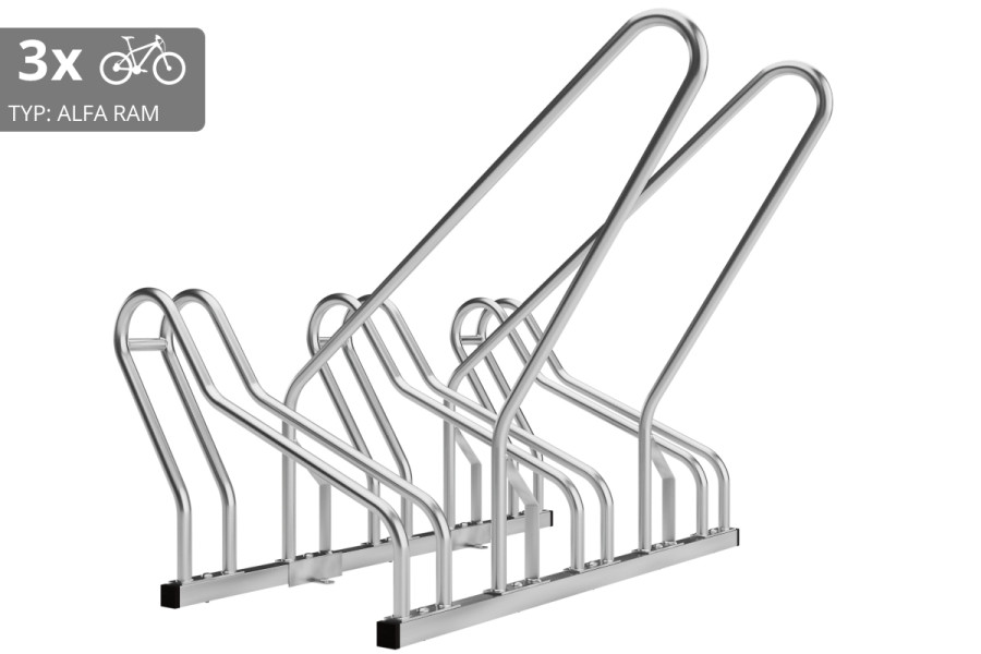 Zárateľný 3 kerékpáros tartó ALFA horganyzott kerettel, ideálny pre bezpečné uchytenie bicyklov.
