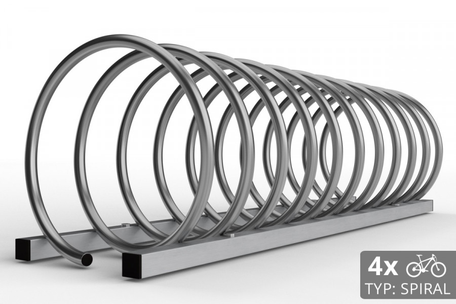 4 kerékpáros SPIRAL tároló, 110 cm rozsdamentes acél, ideálny pre bezpečné a praktické uskladnenie bicyklov.