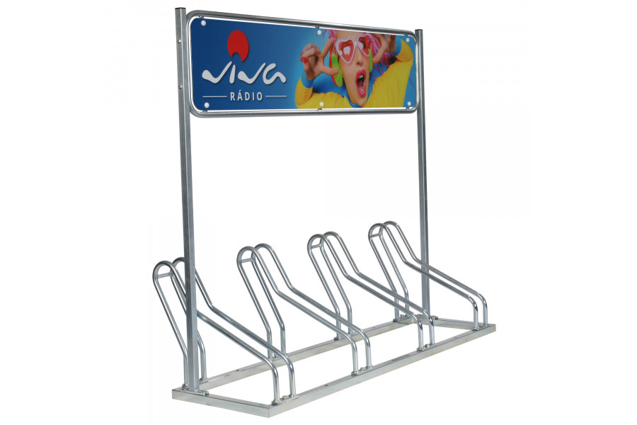 Horganyzott ALFA 4 kerékpártároló reklámtáblával, ideális megoldás kerékpárok tárolására.