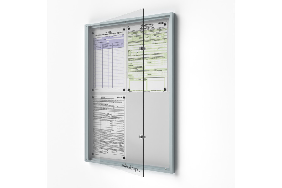 Beltéri zárható vitrin pre 4xA4 dokumenty, ideálny na bezpečné vystavenie a uchovanie dôležitých materiálov.