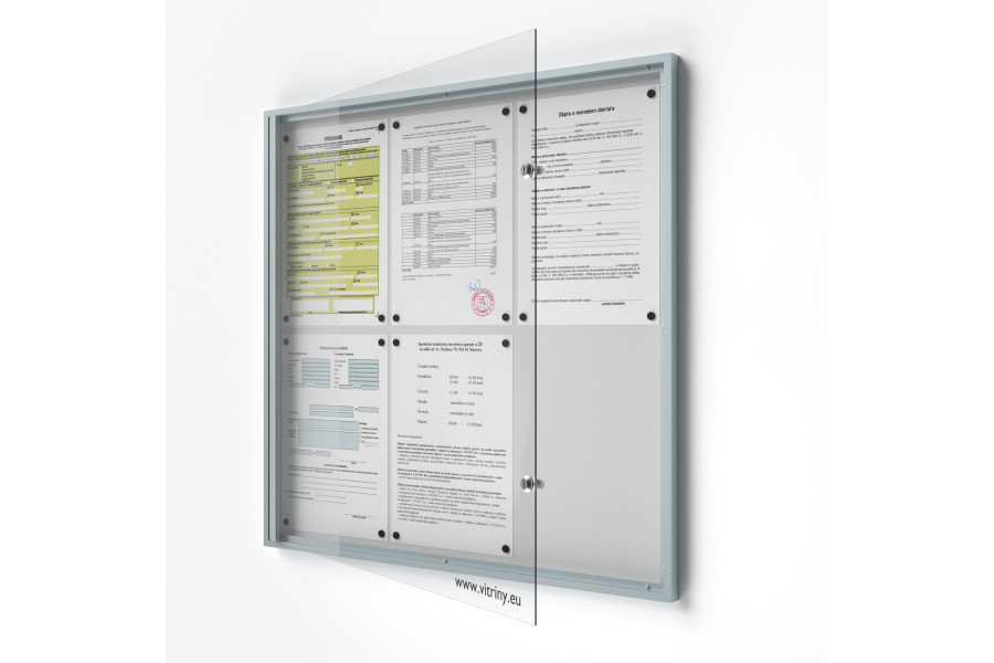 Zárhová vitrina na 6xA4 s lemezlemezom, ideálna pre prezentáciu a ochranu dokumentov.