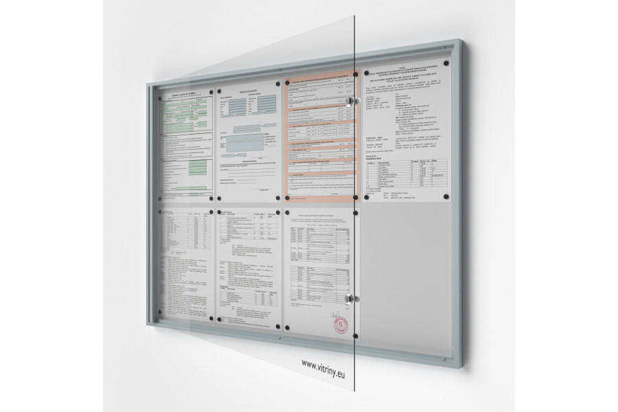 Beltéri zárható vitrin pre 8xA4 dokumenty, ideálny pre prezentáciu a ochranu dôležitých materiálov.