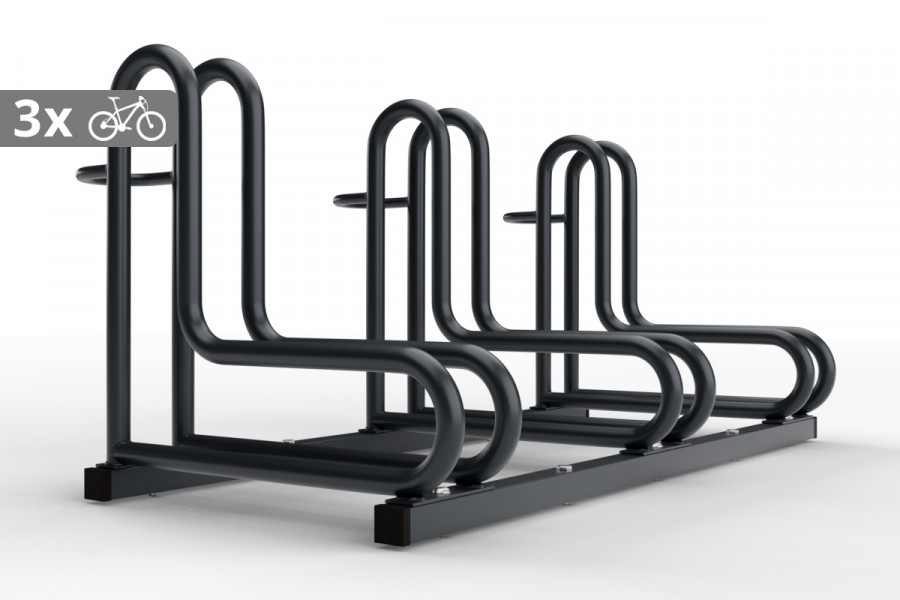 Színes IQ 3 személyes kerékpártároló, ideális megoldás kerékpárok tárolására.