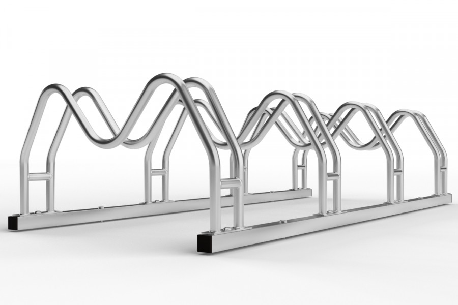 Kétoldalas, 4 kerékpáros MEGA tartó, horganyzott, ideális kerékpárok tárolására és védelmére.