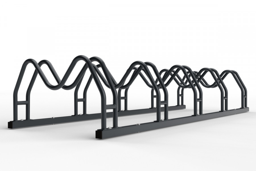 Kétoldalas, 5 kerékpáros MEGA tartó, horganyzott. Ideálny pre bezpečné a pohodlné uloženie bicyklov.