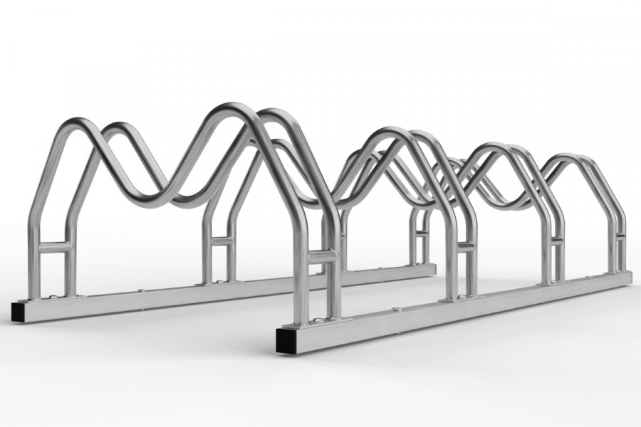 Kétoldalas kerékpártartó 4 db MEGA, vyrobený z kvalitného rozsdamentes acél, ideálny pre bezpečné uchytenie bicyklov.