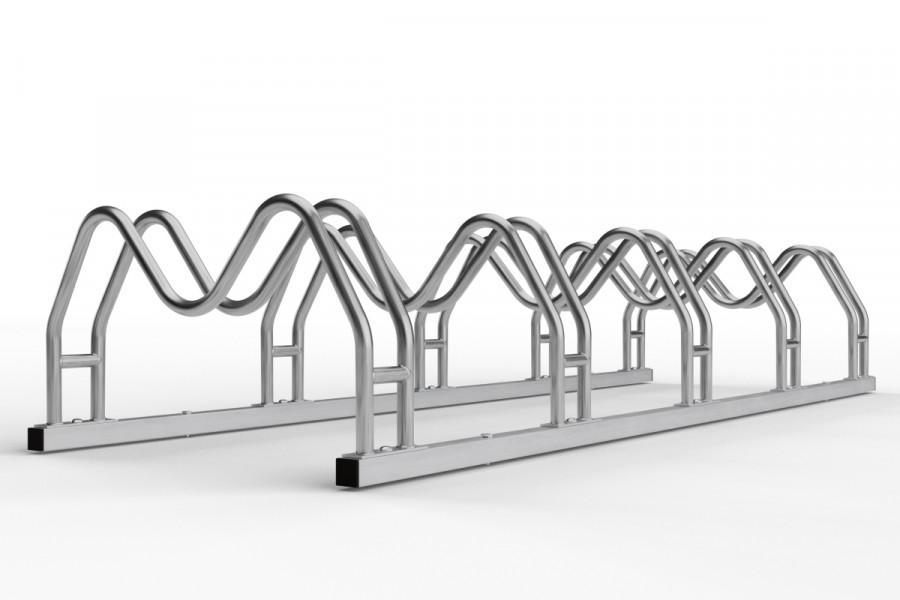 Kétoldalas kerékpártartó 5 db MEGA, vyrobený z kvalitného rozsdamentes acél, ideálny pre bezpečné uchovanie bicyklov.