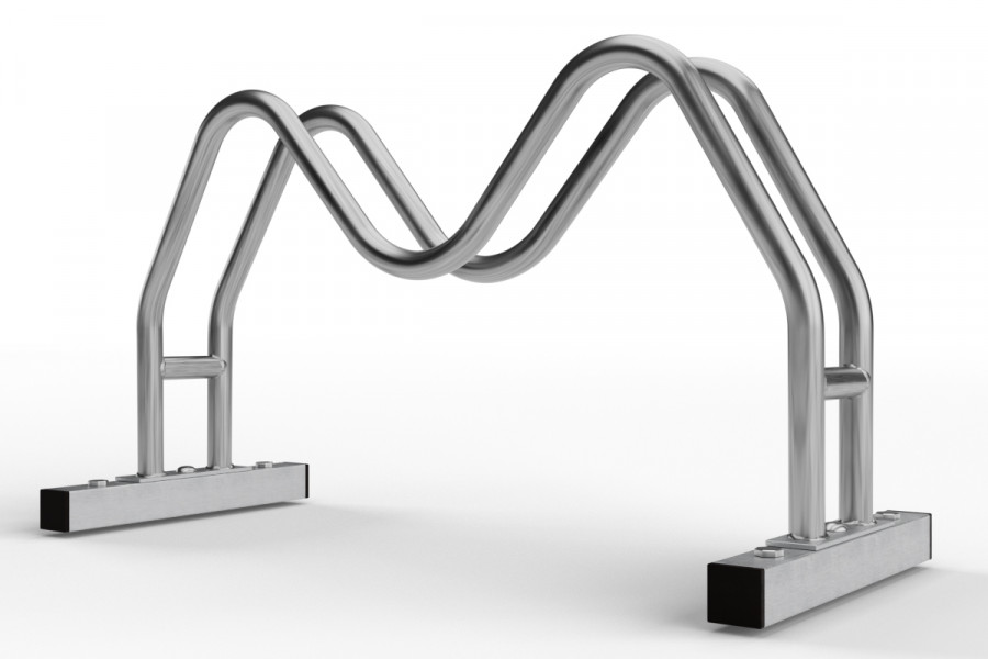 Kétoldalas kerékpártartó MEGA 1 férőhelyes, vyrobený z rozsdamentného ocele, ideálny pre bezpečné parkovanie bicyklov.