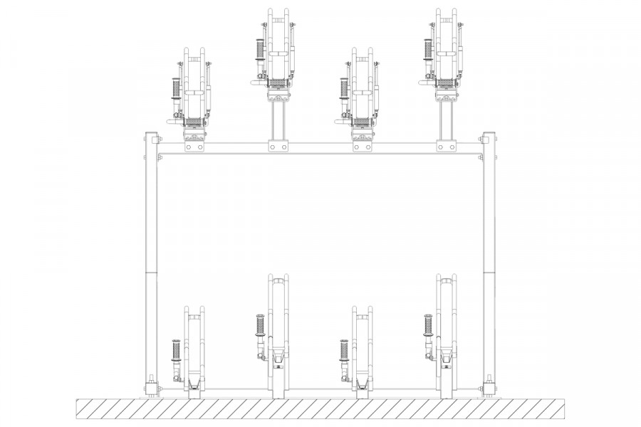 Kétszintes kerékpártároló, 8 férőhelyes, ideális megoldás kerékpárok tárolására.