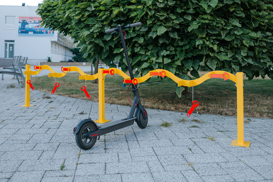 Rollertartó 10 férőhelyes, egyoldalas - ideális megoldás a rollerek tárolására és rendszerezésére.