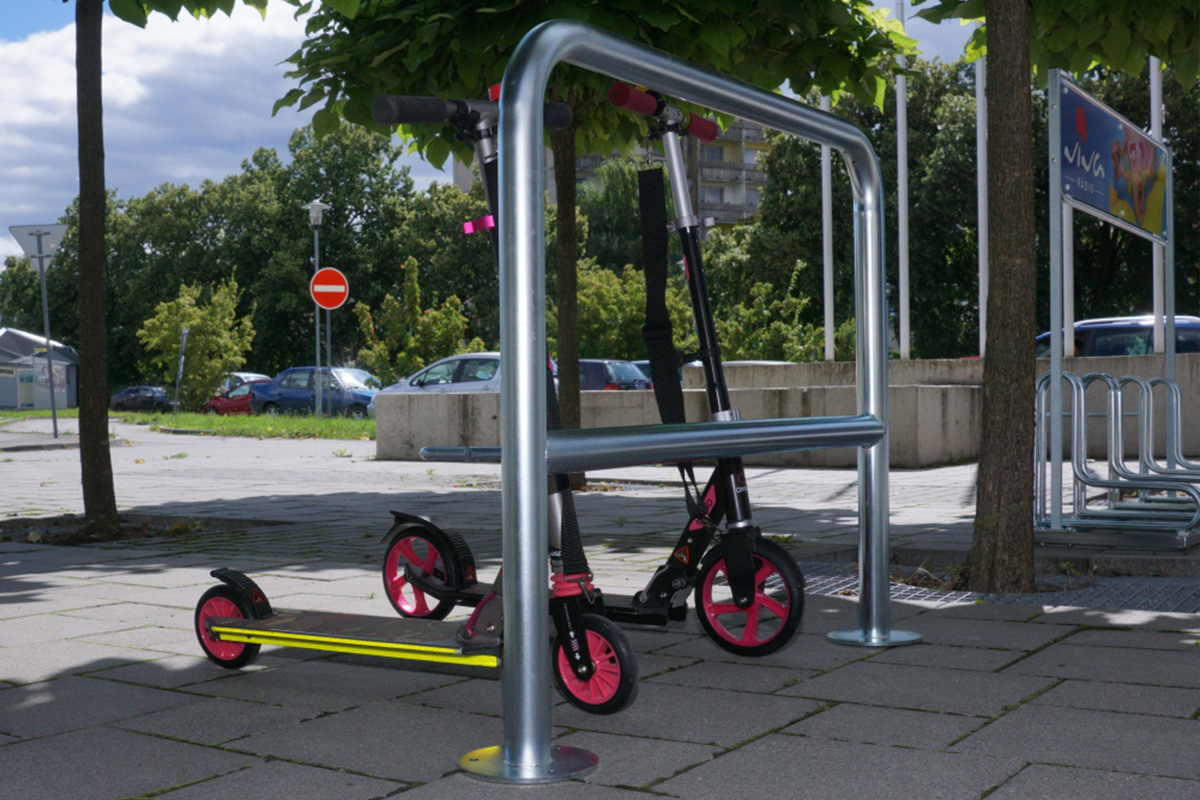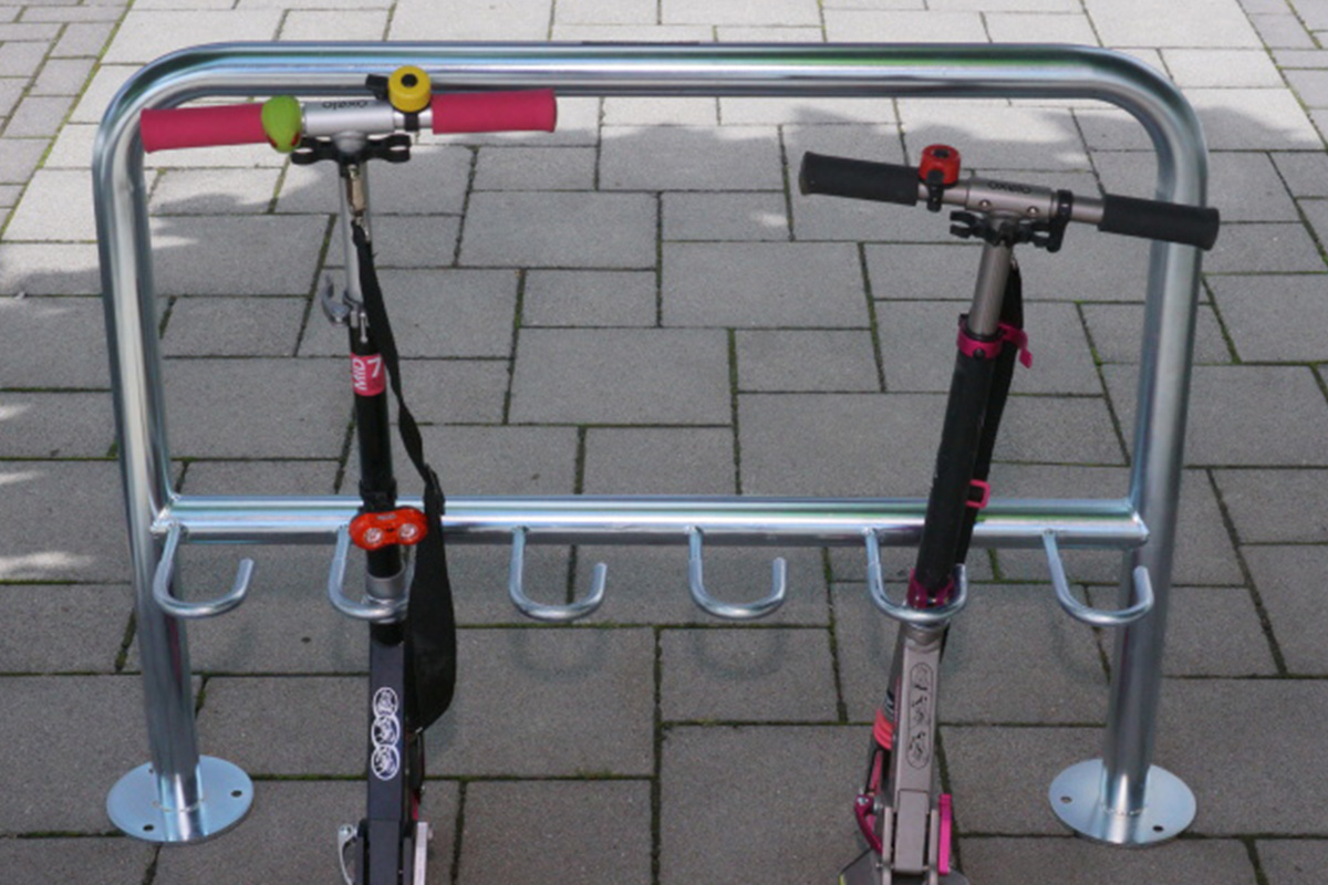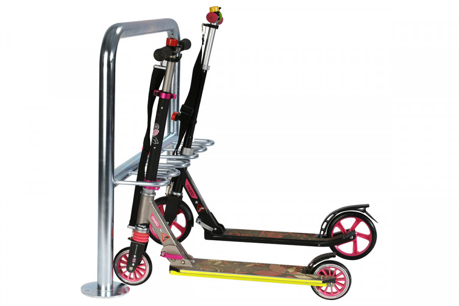 Rollertartó állvány 5 férőhelyes, 100 cm, horganyzott - ideális megoldás a rollerek tárolására.