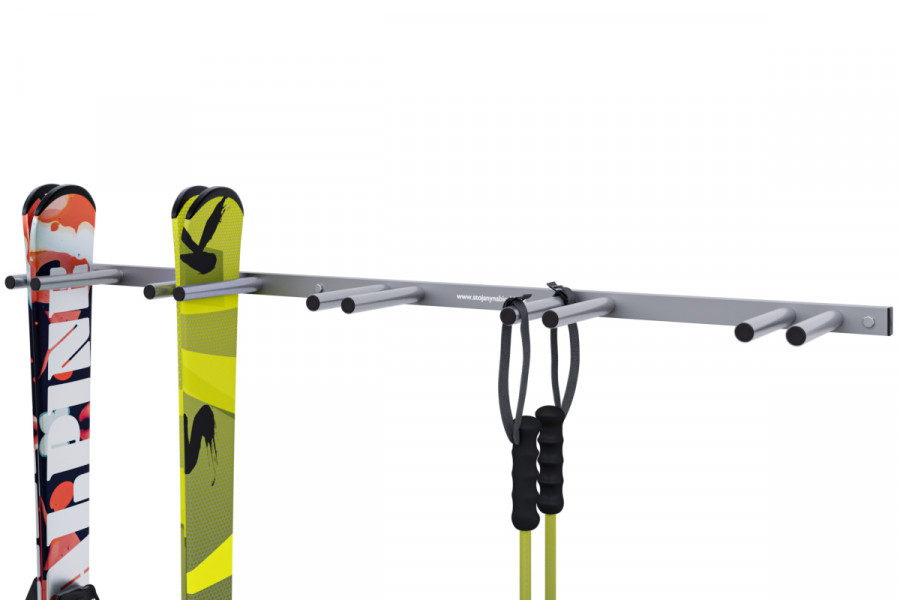 Függőleges síléctartó 5 személy részére, ideális megoldás a sílécek tárolására és védelmére.