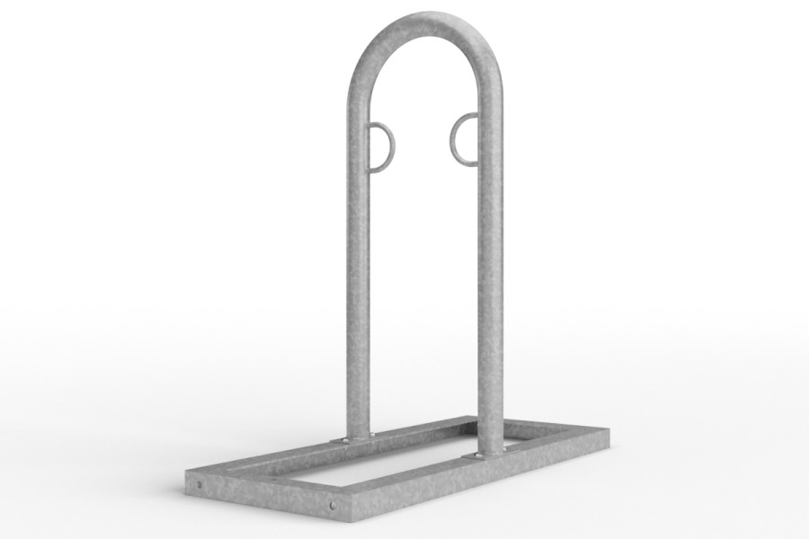 U alakú kerékpártámasz alapkereten, horganyzott, ideális megoldás kerékpárok biztonságos tárolására.