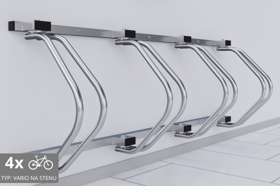 Horganyzott falra szerelhető kerékpáros tartó 1-8 kerékpárhoz, 170°-ban elforgatható, 30x30 mm-es acélváz.