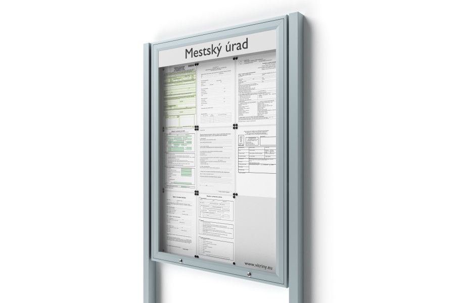 Zárható információs vitrin 9xA4 UP50 táblával és oszlopokkal
